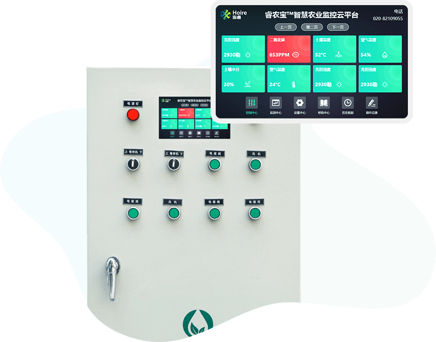 結合“睿農寶”環境監測系統,可以實時展示環境數據與設備運行狀態。每一個設備都有獨立的控制開關,支持多路設備的控制(4/8/16路)。